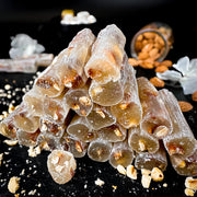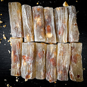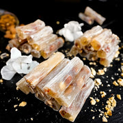 Saldie batoniņi pildīti ar aprikožu kauliņiem. Aprikožu kauliņi pēc garšas ļoti līdzīgi grauzdētām mandelēm. Pirkstiņem ir ļoti jauka tekstūra - ne pārāk mīksti un ne pārāk cieti. Garša ir maigi saldena ar nelielu vaniļas noti. Ļoti garšīgi ar melno tēju!