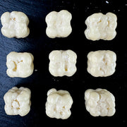 Šie baltās šokolādes dražejas kubiņi ar kokosriekstu pildījumu ir īsts saldumu baudījums, kas apbur ar savu maigo garšu un grezno tekstūru. Katra kubiņa sirds ir piepildīta ar mīkstu, aromātisku kokosriekstu krēmu, kas harmoniski savienojas ar baltās šokolādes samtaino saldumu.