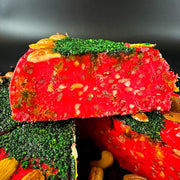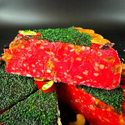 Supergarda kūka no Samarkandas halvas ar sulīgu granātābolu garšu un pildīta ar žāvētiem augļiem, riekstiem un saulespuķu sēklām! Garša ir vidēji saldena, jūtams neliels granātābola skābums un viegla riekstu garša.