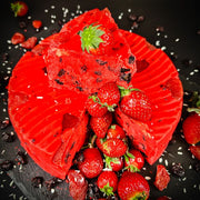 Ļoti skaists, košs, salds un gards deserts! Samarkandas halva ar zemeņu garšu ar zemeņu gabaliņiem. Halva ir salda, bet ne pārāk salda! Tai ir maiga, zemeņu krējuma garša. Atgādina bērnības mīļāko zemeņu džemu. Halvas pildījums sastāv no karaliskajām rozīnēm un kaltētu zemeņu gabaliņiem.
