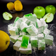 Saldums no ābolu sulas, apbērts ar pūdercukuru. Mīksta, ābolu garša. Vienkāršs, bet ļoti garšīgs lukums. Ideāls viegls saldums.
