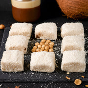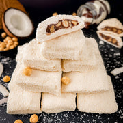 Spilventiņš ir izgatavots no vaniļas pastilas (garšo kā klasiskais maršmelou). Pildījums no lazdu riekstiem un šokolādes krēmu. Pats spilventiņš ir biezi pārkaisīts ar kokosriekstu skaidiņām! Tīra bauda!Visi lazdu riekstu un šokolādes cienītāji būs sajūsmā!