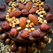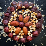 Halva ar bagātīgu šokolādes garšu (kerobs + kakao). Halvas pildījums no lazdu riekstiem, mandelēm un zemesriekstiem. Katrs gabals ir pārklāts ar šokolādes glazūras kārtu un dekorēts ar rīvētām pistācijām un sasmalcinātiem zemesriekstiem.