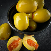 Zaļās olīvas pildītas ar baklažāniem