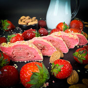 Zemeņu lukums ar zemeņu krēmu ar mandelēm