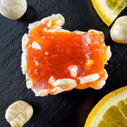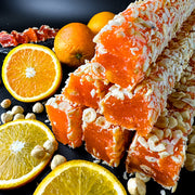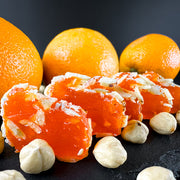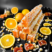 Karaliskais saldums no apelsīnu sulas, ar lazdu riekstiem, apbērts ar mandeļu skaidiņām. Микста, идеальное блюдо для отдыха с удовольствием. Краукшкигас, принимающие решения, видят контраст и лукуму сальдо гаршу.